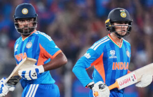 ടി20 ലോകകപ്പിലെ ലോക റെക്കോർഡ് തകർത്ത് ഇന്ത്യൻ ഓപ്പണർമാരായ സഞ്ജു സാംസണും അഭിഷേക് ശർമയും. ടി20 ലോകകപ്പിലെ ആദ്യത്തെ 50+