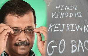 ഹിന്ദുവിരുദ്ധൻ കെജ്രിവാൾ ഗോ ബാക്ക്; ഗുജറാത്തിൽ കെജ്രിവാളിന്റെ റാലിക്കിടെ ബിജെപി ആക്രമണം