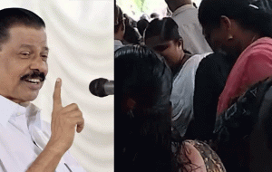 സ്ഥലത്തെ എംഎൽഎ കൂടിയായ എം വി ഗോവിന്ദൻ മാസ്റ്റർ നാടുകാണിയിലെ പുതിയ മൃഗശാലയെ കുറിച്ച് പറയുതിനിടെയായിരുന്നു സദസിൽ സ്ത്രീകള്