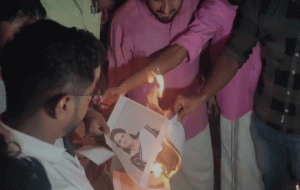 പദ്മജയുടെ ഫോട്ടോ കത്തിച്ച് കെ.എസ്.യു പ്രതിഷേധം